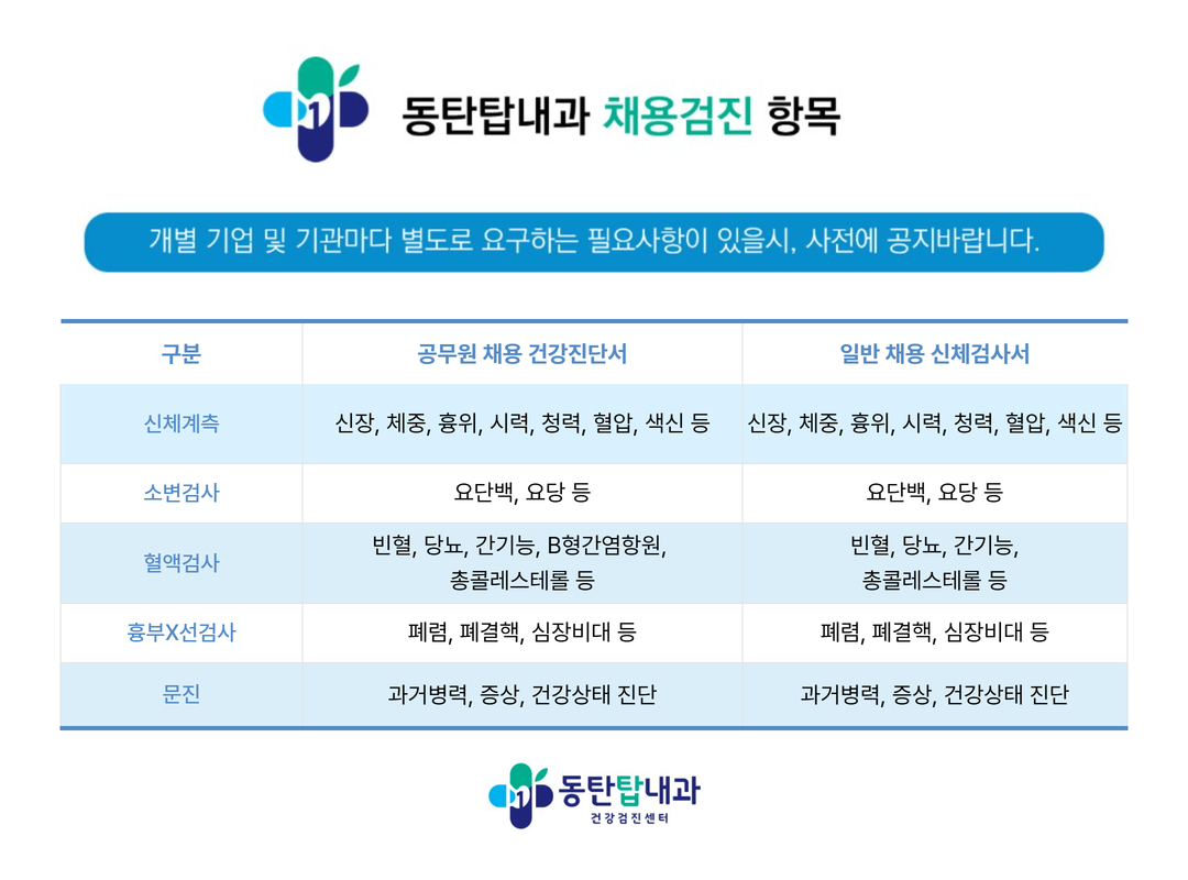 ㆍ문진, 흉부방사선검사, 혈액검사, 소변검사 등